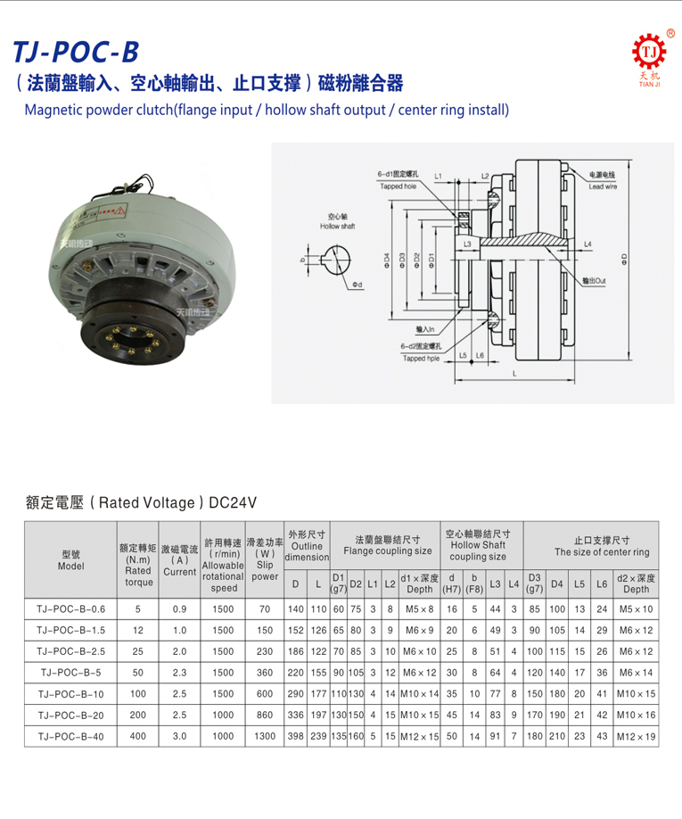 POC-B磁粉离合器防止由于滑差所致的发热现象