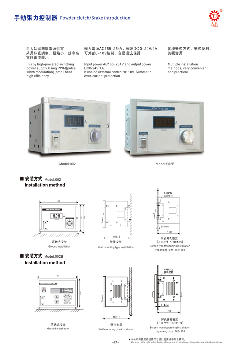 上海手动KTC002张力控制器多方式安装